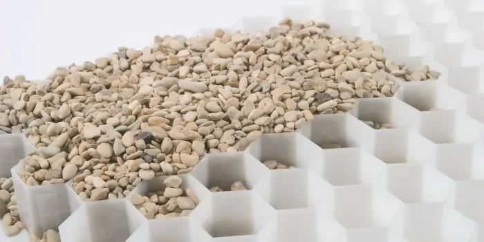 Its unique design makes it easy to install, as well as being eco-friendly, strong and durable. It arrives in the form of individual sheets of connected hexagon cells with a porous geotextile backing. This means that it not only prevents moving gravel, ruts and puddles, but it can easily withstand heavy loads thanks to its rigid honeycomb construction made from recyclable HDPE. In addition, the durable geotextile layer allows water to drain easily and prevents weed growth.