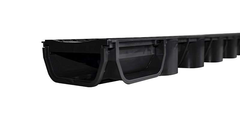 Low Flow Channel Drain [50mm] designed for efficient surface water management in compact areas. No quad box required, with its built-in 90° corner connection slots, you can create corners and directional changes directly from the channel bod. Ideal for patios, pathways, and light-duty drainage applications, providing reliable flow control in tight spaces.